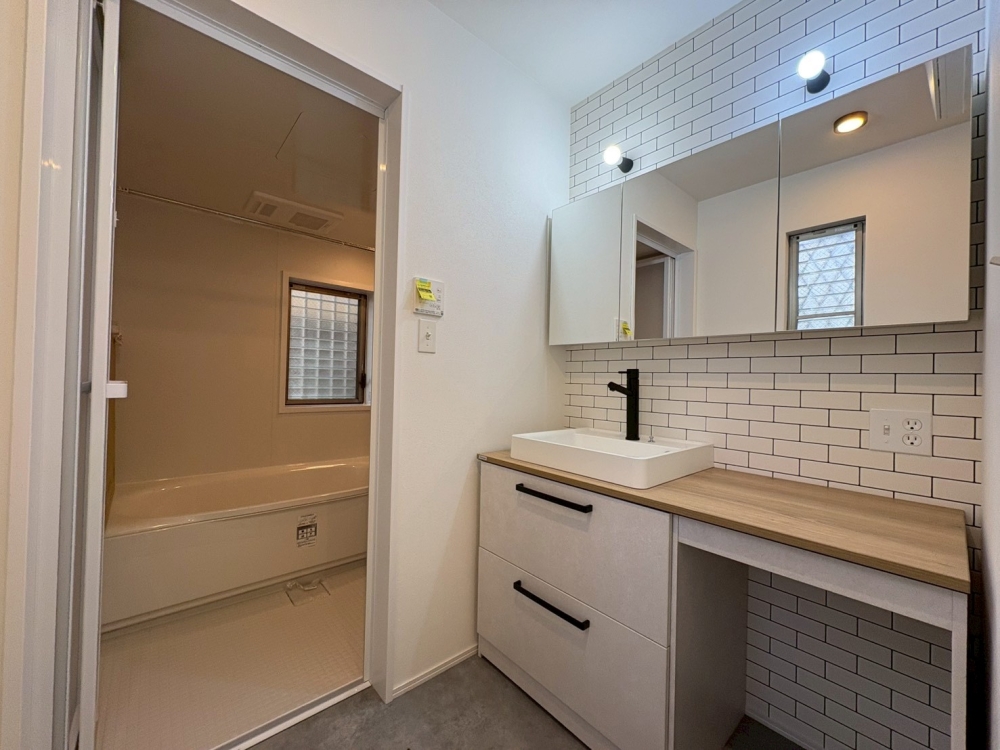 ◆洗面台交換 ◆三面鏡新規取付 ◆給湯器交換(床暖房対応) ◆全建具交換