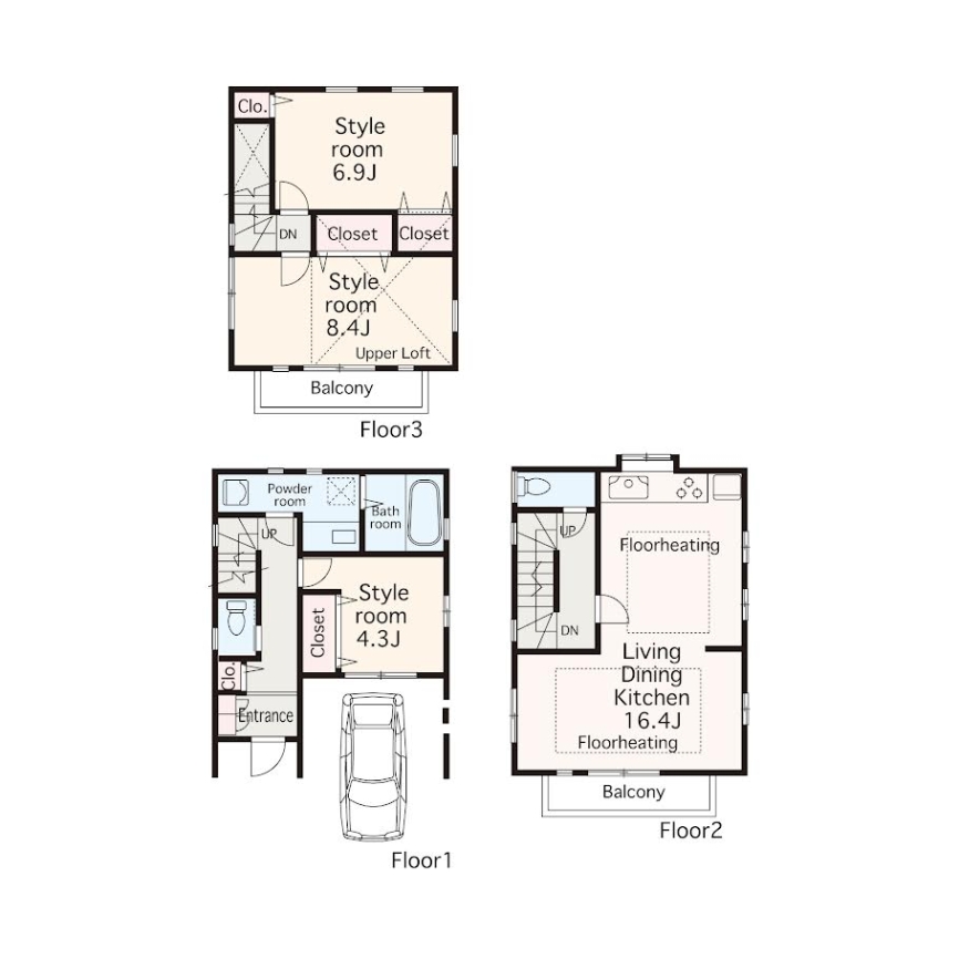 ◆構造:木造3階建 ◆間取:3LDK
