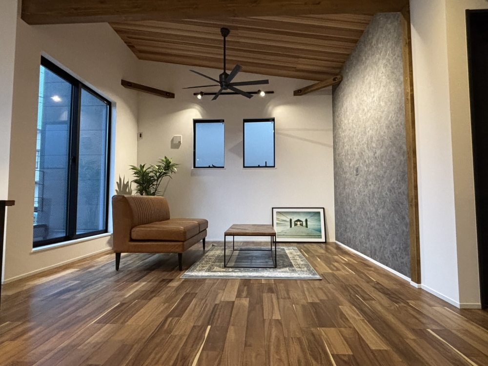 天井にはレッドシダーのリアルウッドを贅沢に採用。クロスでは表現できない深みと質感が空間に本物の温もりを与えます。